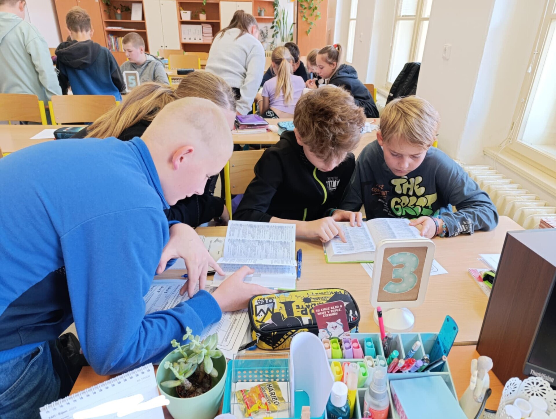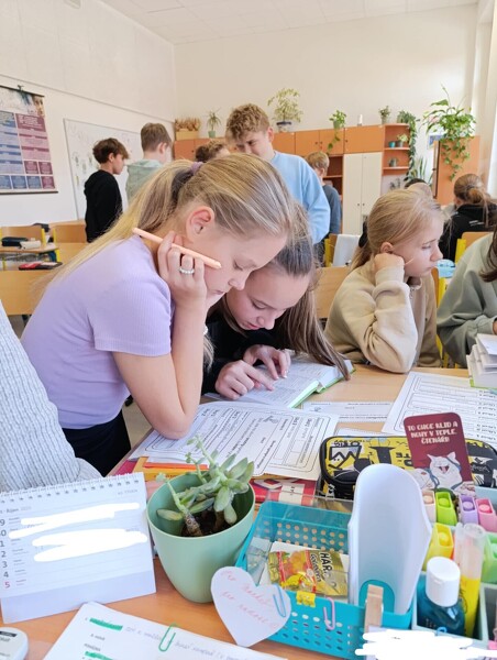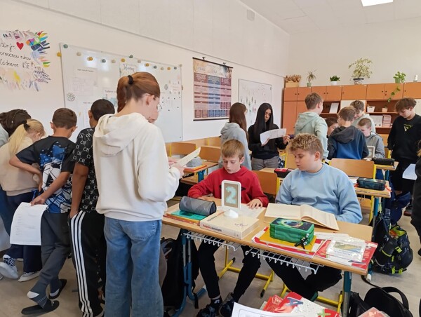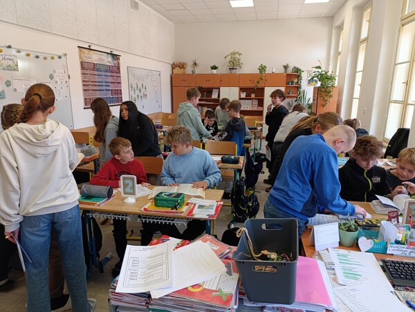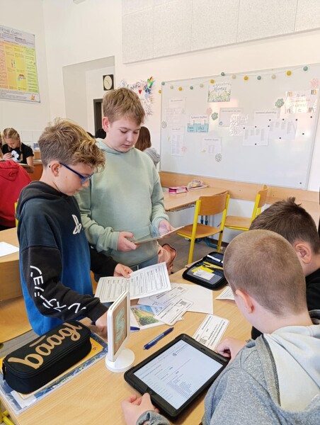 Stále častěji slýcháme, že v dnešní době už je vše možné najít na internetu. To je sice pravda, ale ověřeným zdrojům se zkrátka nic nevyrovná. Naši šesťáci si dnes vyzkoušeli aktivní práci s různými jazykovými příručkami, přičemž na pěti stanovištích ve dvojicích plnili zadané úkoly. Vyzkoušeli si tak hledat v Pravidlech českého pravopisu, Slovníku spisovné češtiny, Slovníku cizích slov, Slovníku synonym a antonym a nakonec i na stránkách Internetové jazykové příručky, kde po načtení QR kódu vyhledávali chybně napsaná slova a snažili se je pomocí příručky opravit.