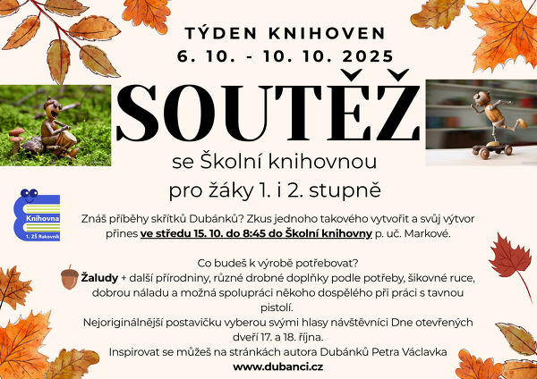 V rámci právě probíhajícího Týdne knihoven vyhlašuje naše školní knihovna soutěž! Více informací naleznete na plakátku.