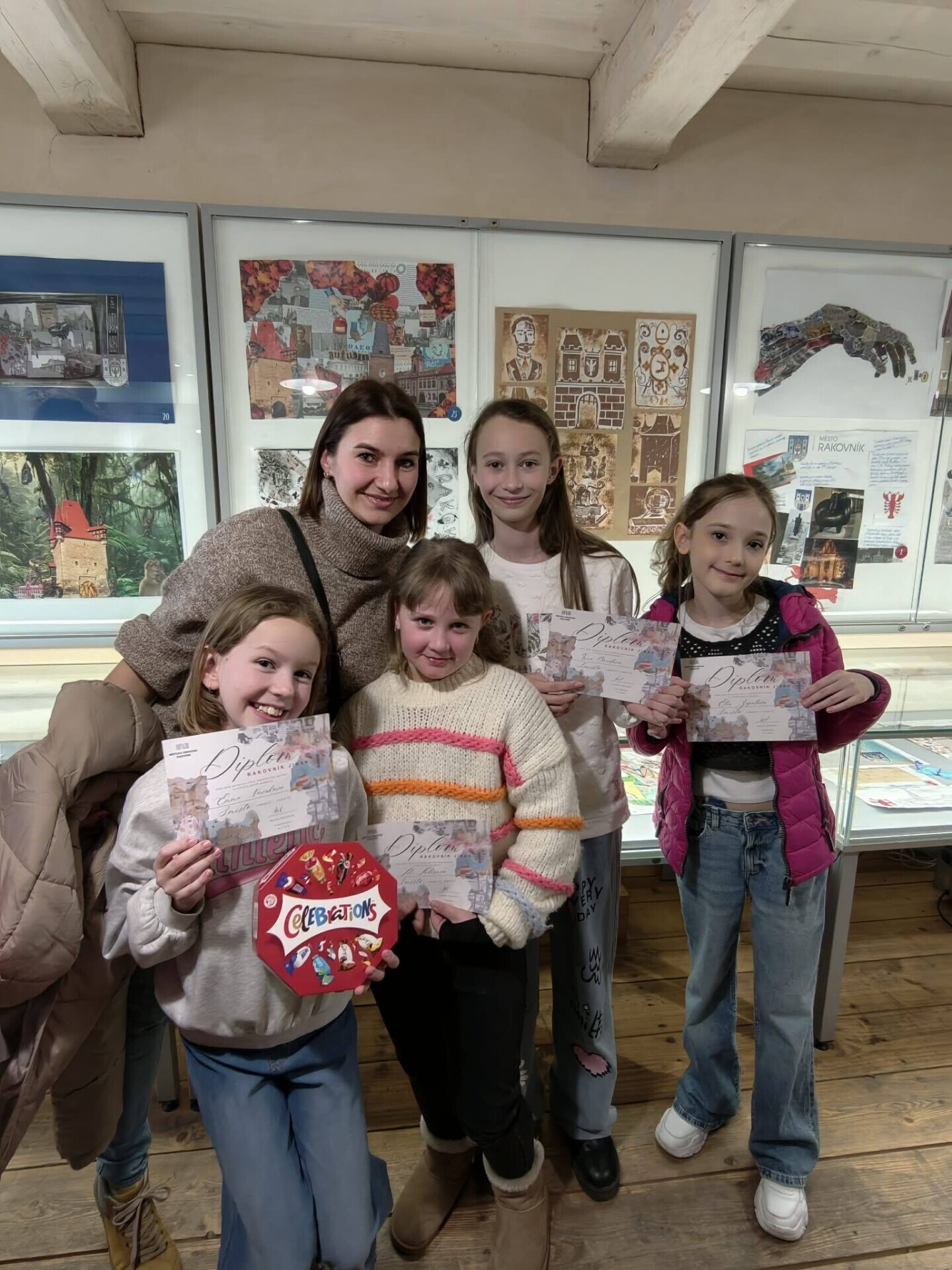 Všechny soutěžní koláže byly vystaveny v roubence, kde si je návštěvníci mohli prohlédnout od 7. ledna do 28. února 2026. Výstava byla opravdu pěkná. Nabídla pestrou přehlídku nápaditých pohledů na Rakovník a ukázala, jak kreativně dokážou děti pracovat s různými materiály i vlastní fantazií.